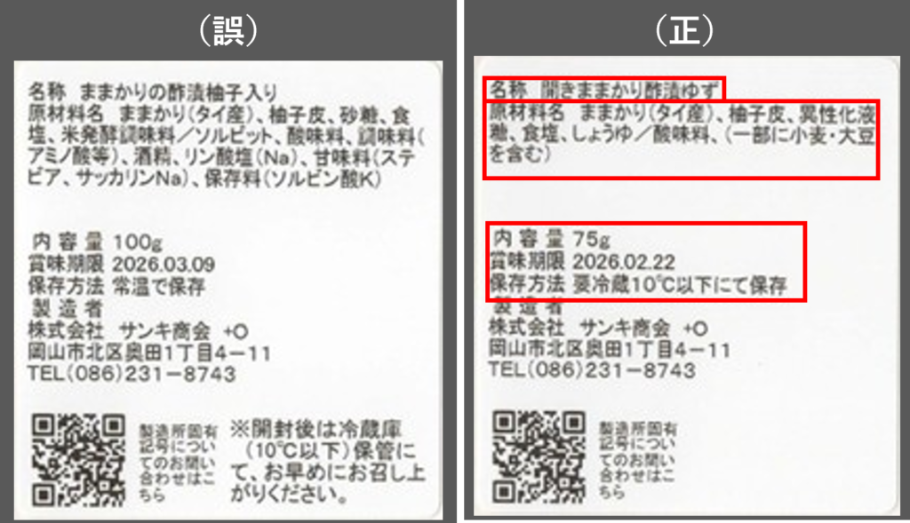 ・アレルギー表示 (小麦、大豆の表示漏れ)