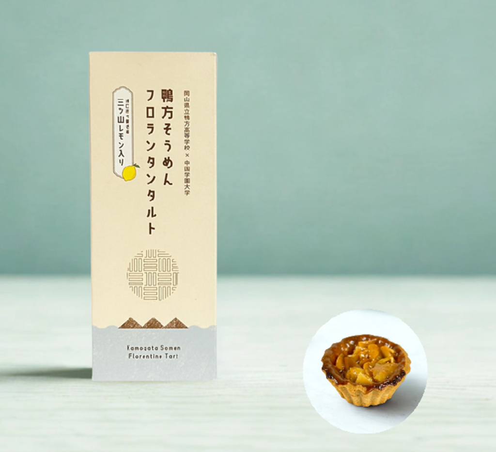 フロランタンには、スライスアーモンドと手延べそうめんの製造過程で生じる「バチ」を使用した和洋風焼き菓子。そのフロランタンをタルト生地で包み込み、ちょっぴり三ツ山レモンの爽やかな風味が特徴です。